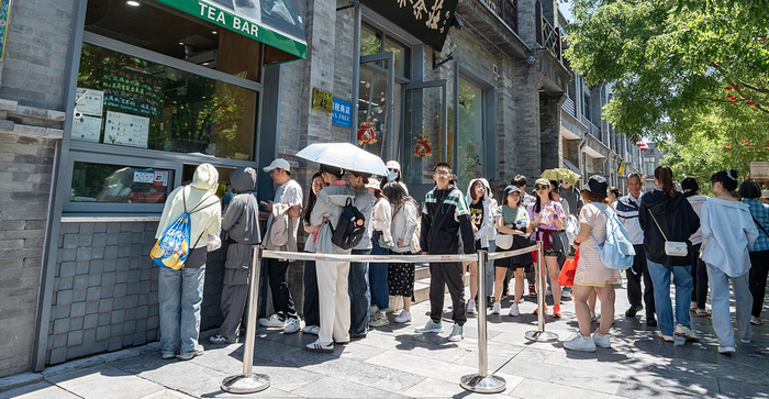 消费者排队购买某中国老字号推出的抹茶味冰激凌