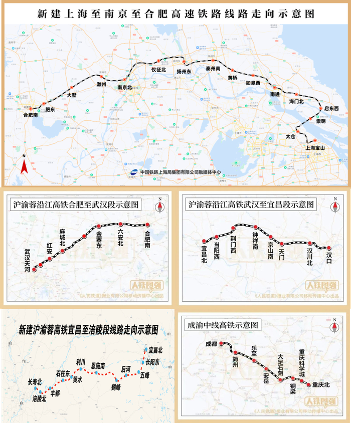 由北沿江高铁、合武高铁、武宜高铁、渝宜高铁、成渝中线高铁等段构成。