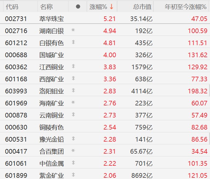 正文 金银价格再创历史新高,相关概念股走强,洛阳钼业创历史新高 三木 V管理员 /2025-12-27 /0 评论 /10 阅读 1227 此篇文章发布距今已超过99天,您需要注意文章的内容或图片是否可用! 12月26日,A股市场贵金属概念股集体走强,其中,萃华珠宝涨超5%,湖南白银、白银有色、国城矿业涨超4%,江西铜业、西部矿业涨超3%。值得注意的是,洛阳钼业创出历史新高。 消息面上,因地缘政治紧张局势仍在持续,亚洲交易时段开盘后,贵金属市场再度出现大涨行情。现货黄金涨超1%,首次站上4530美元/盎司大关,年内累计涨幅超72%,有望创下自1979年以来最佳年度表现;现货白银突破75美元/盎司,再创历史新高,白银年内累计涨幅达160%。 股票频道更多独家策划、专家专栏,免费查阅>>