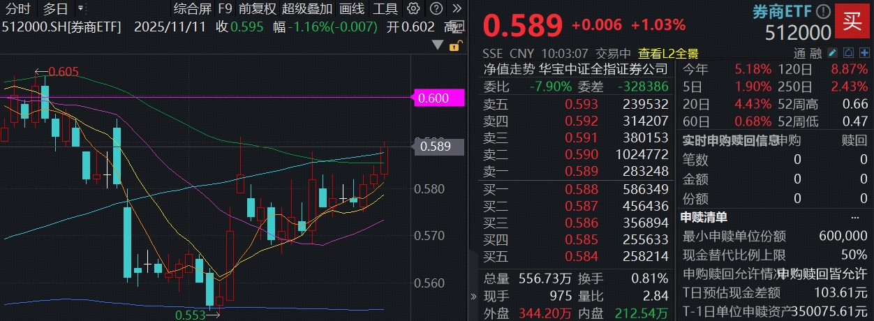 有行情,买券商!券商ETF(512000)及其联接基金(A类 006098;C类007531)被动跟踪中证全指证券公司指数,一键囊括49只上市券商股,是集中布局头部券商、同时兼顾中小券商的高效率投资工具。券商ETF(512000)最新基金规模超400亿元,年内日均成交额超10亿元,为A股规模、流动性居前的顶流券业ETF。