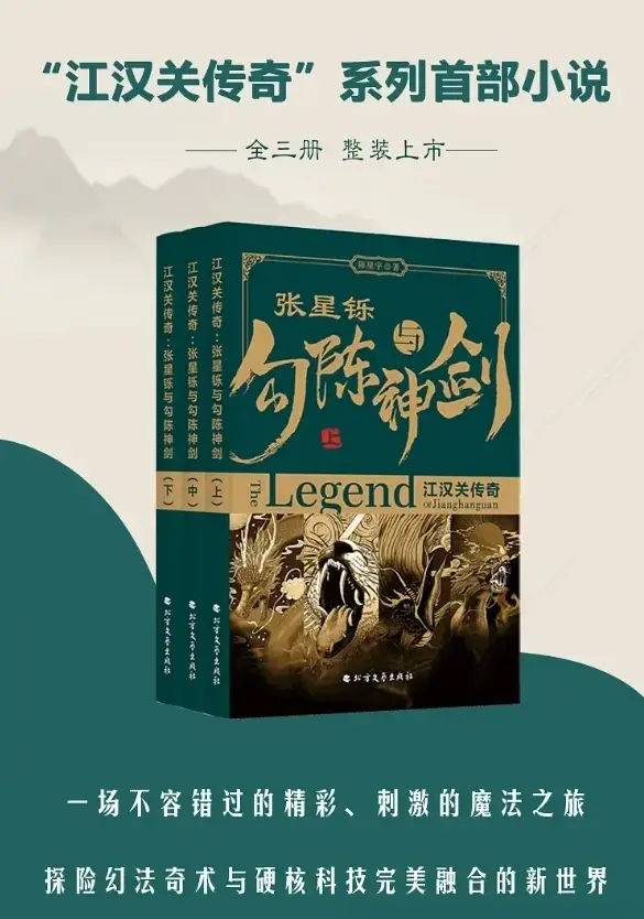 陈星宇著长篇小说图书《江汉关传奇:张星铄与勾陈神剑》全三册。故事发生在奇幻妙法与未来科技完美融合的全新五行界。通过轻松有趣的校园故事,让东方传统文化与当代多元价值观激烈碰撞,展现少年成长中关于“友情亲情爱情”的独特东方式羁绊。