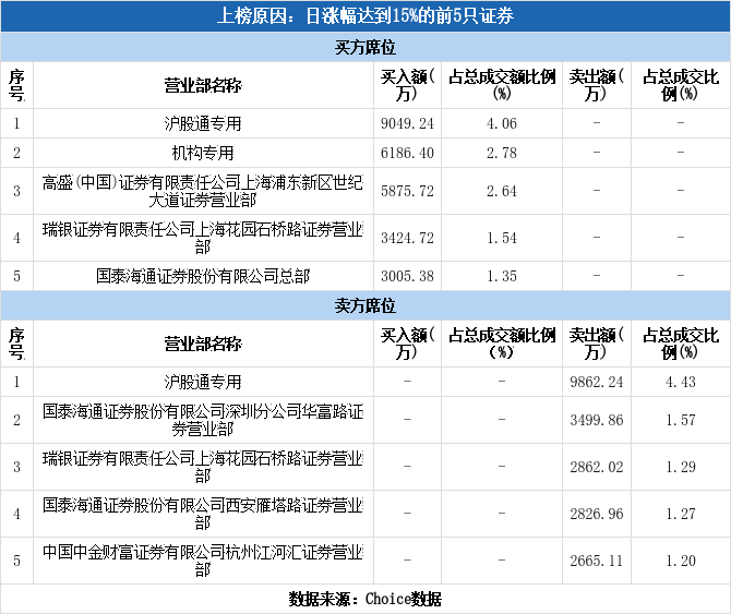 上交所2025年12月12日交易公开信息显示,斯瑞新材因属于日涨幅达到15%的前5只证券、有价格涨跌幅限制的连续3个交易日内收盘价格涨幅偏离值累计达到30%的证券而登上龙虎榜。斯瑞新材当日报收34.45元,涨跌幅为17.58%,换手率9.73%,振幅21.50%,成交额22.27亿元。