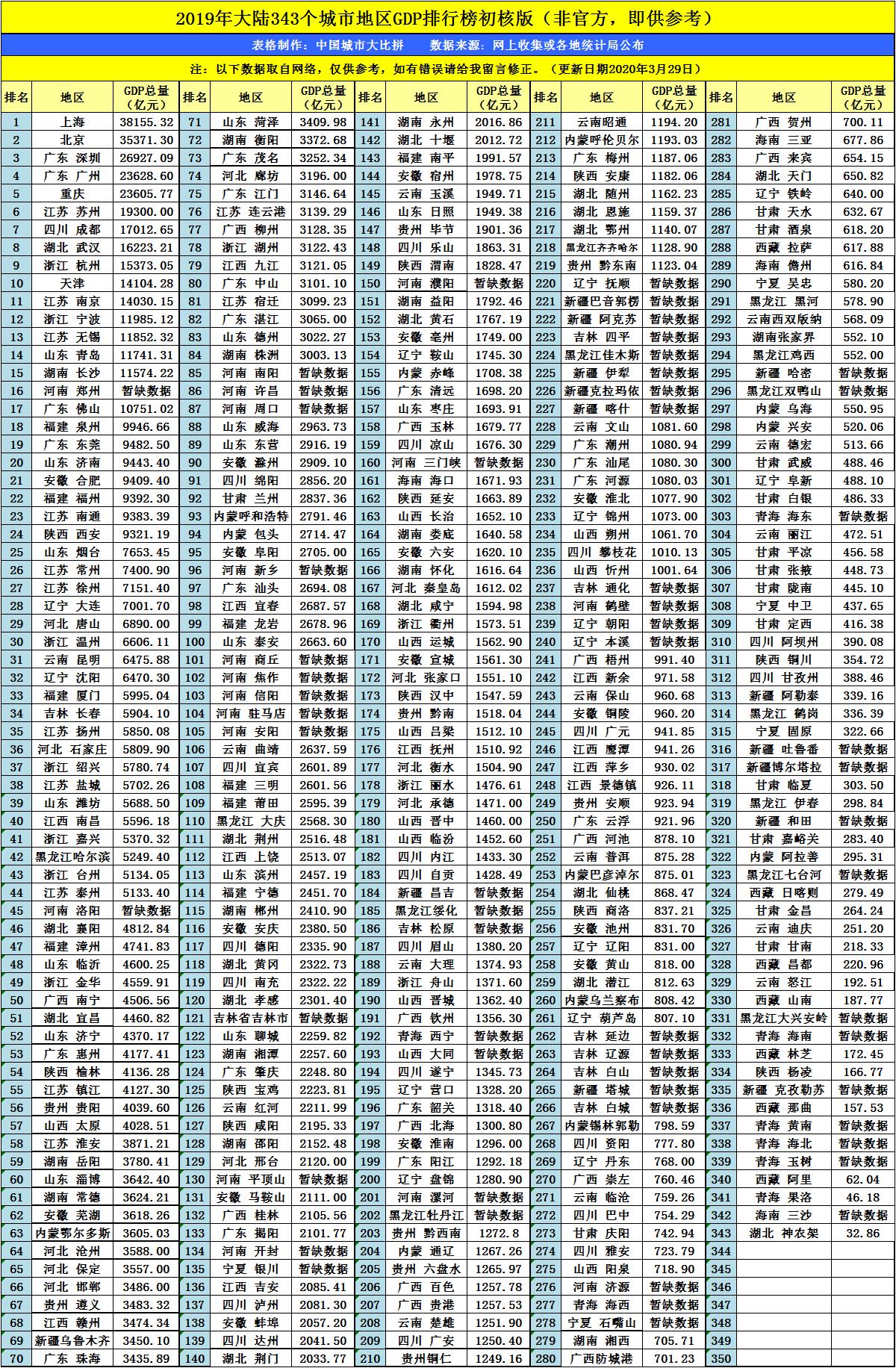 由此可见,目前邯郸的GDP与遵义和保定都是差距非常渺小的,谁稍微在2020年发力,都可能把另外两座城市GDP甩远,那么我们邯郸人多使劲宣传宣传家乡优势和特产,可否吸引更多人到我们邯郸创业投资,或者在网络上购买我们更多邯郸本土商品,把我们GDP搞得更大呢?你认为呢?我们评论区见,下图为2019年大陆300多个城市GDP排名,数据收集于网络,部分城市数据并非官宣,如有错误请评论区留言,小编我及时修正和持续更新
