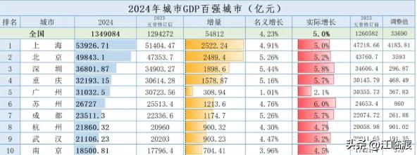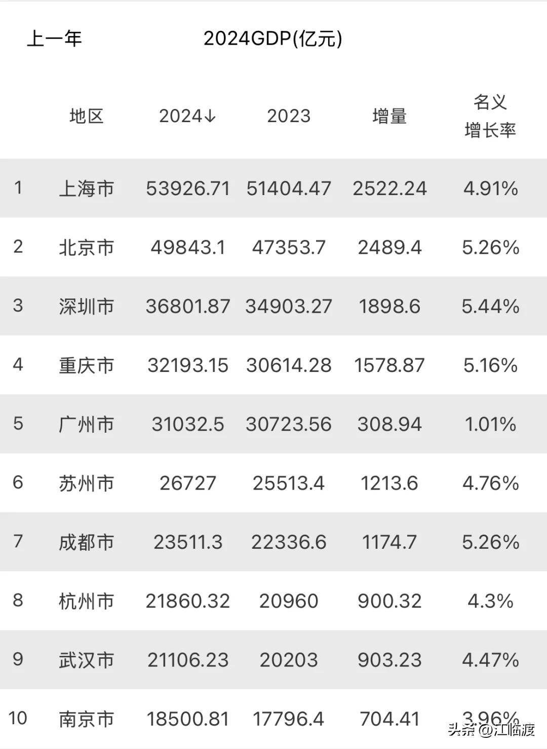 随着苏州GDP公布 ,2024年全国GDP前十强城市已全部出炉。