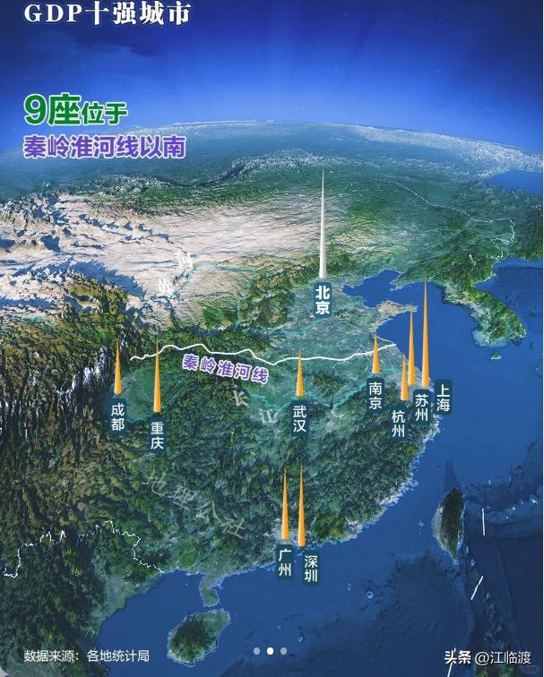 从南北分布来看,GDP前十城市中,南方共有9城入围,分别是上海、深圳、重庆、广州、苏州、成都、杭州、武汉、南京,北方仅有1城,帝都北京。