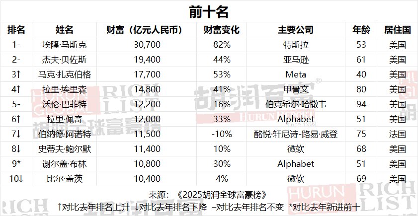 马克·扎克伯格以1.77万亿元人民币的财富首次跻身前三,增加了6100亿元,投资者对Meta在AI和技术基础设施方面的进步持乐观态度。