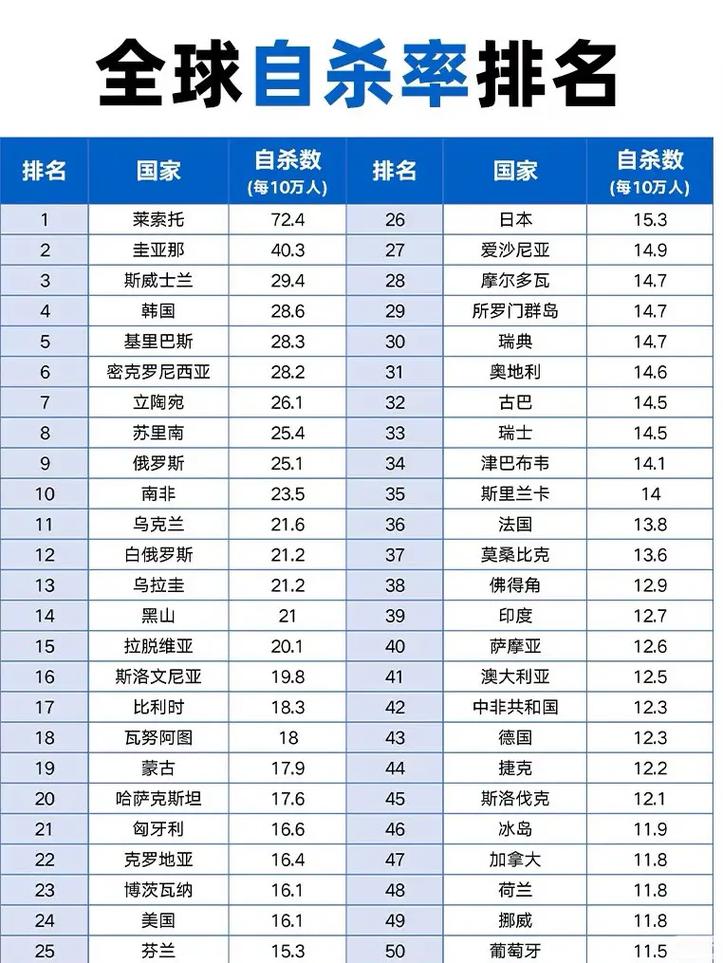 世界上自杀率最高的十个国家 日本韩国纷纷上榜(2024年最新排名前十榜单)