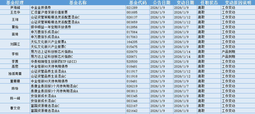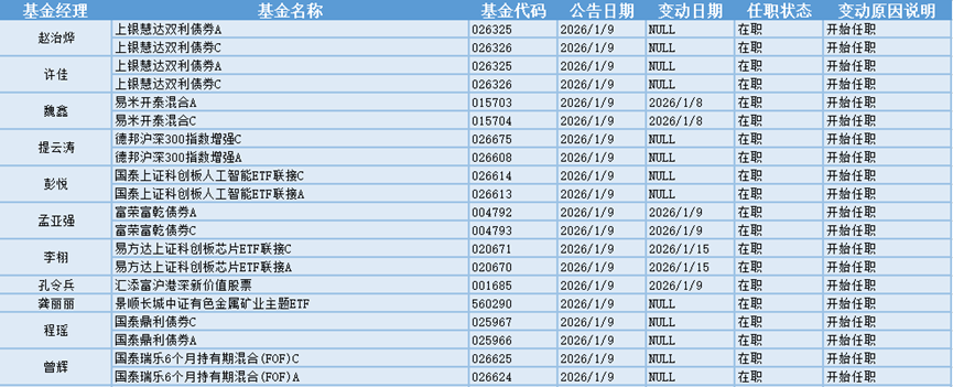 基金经理是一只基金产品最核心的成员,能决定一只基金的投资方向、投资策略以及投资风格,基金经理出色的择时选股能力和调研预测能力是基金业绩的有力保证,所以基金经理是投资者在选择基金产品时的重要依据。基金经理的变动很大程度上会影响到基金产品未来的表现,是一个需要特别关注的信息。1月9日共有24位基金经理发生任职变动。