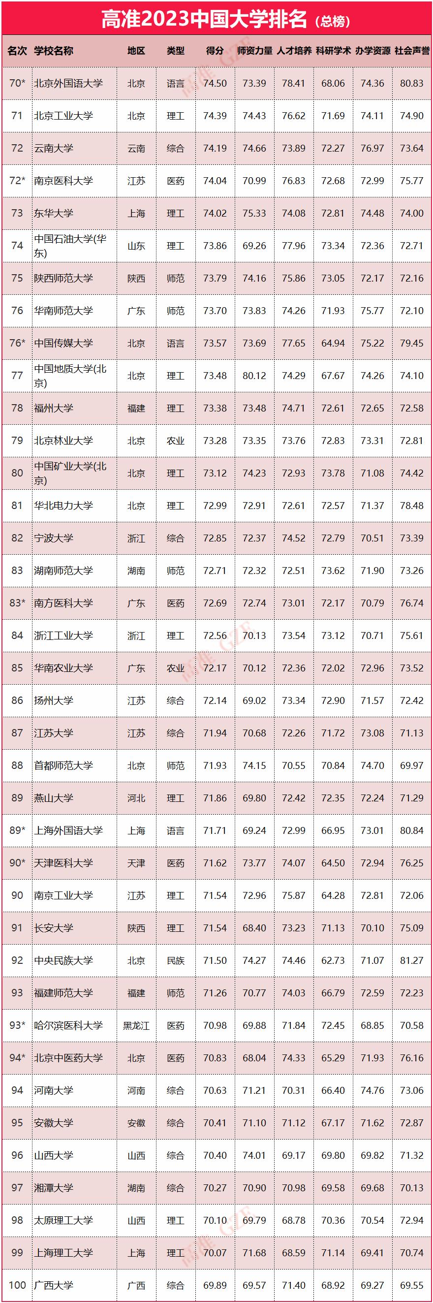 正文 又一个大学排名!2023高准中国大学排行榜发布:武大华科跻身前10 三木 V管理员 /01-11 /0 评论 /11 阅读 0111 文章最后更新时间2026年01月11日,若文章内容或图片失效,请留言反馈! 5月23日,“高准中国大学排行榜”(2023)正式对外发布。 清华大学、北京大学,复旦大学位居前3强。 浙江大学第4,上海交通大学第5,中国科学技术大学第6,南京大学第7,中国人民大学第8,武汉大学第9,华中科技大学第10。 前100强榜单如下: