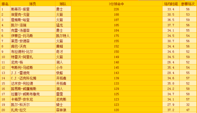 NBA单赛季三分球记录排行榜2023最新排名前十名对比