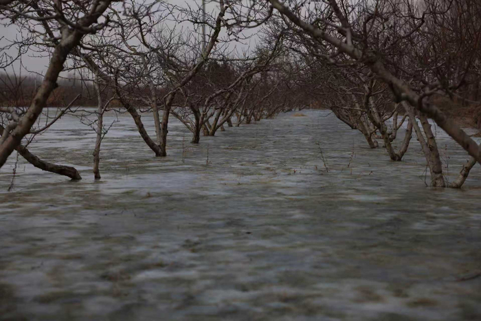 保定张海庄村南果园地下渗水已结冰。 新京报记者 李英强 摄