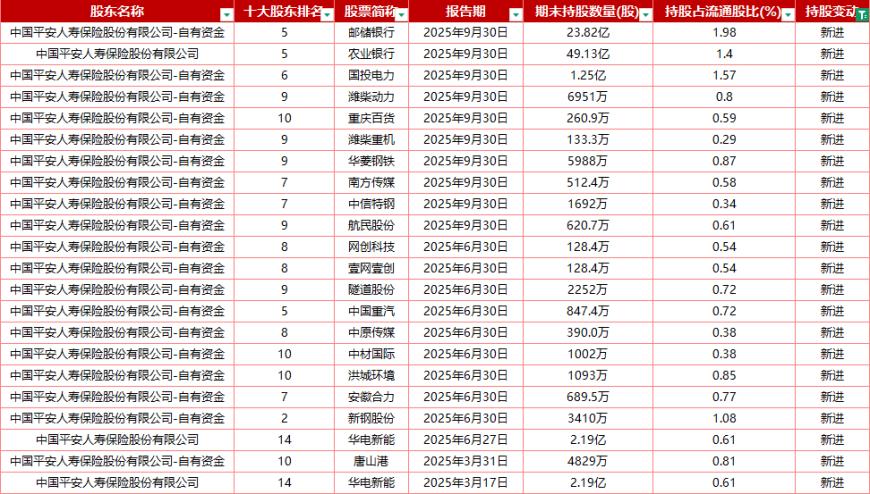 实际不然。就在2025年,许多保险公司都在“悄悄”买入A股公司股票,并跻身十大股东,平安人寿便是较具代表性的一家。