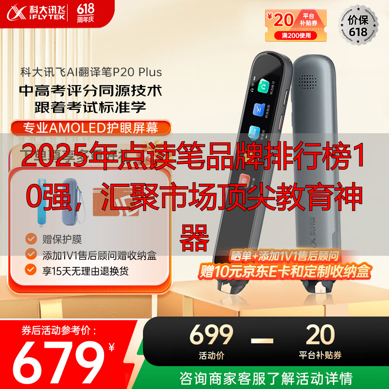 【京东自营】科大讯飞AI翻译笔P20Plus英语点读笔学习机电子词典笔英语学习翻译神器幼小初高全年龄