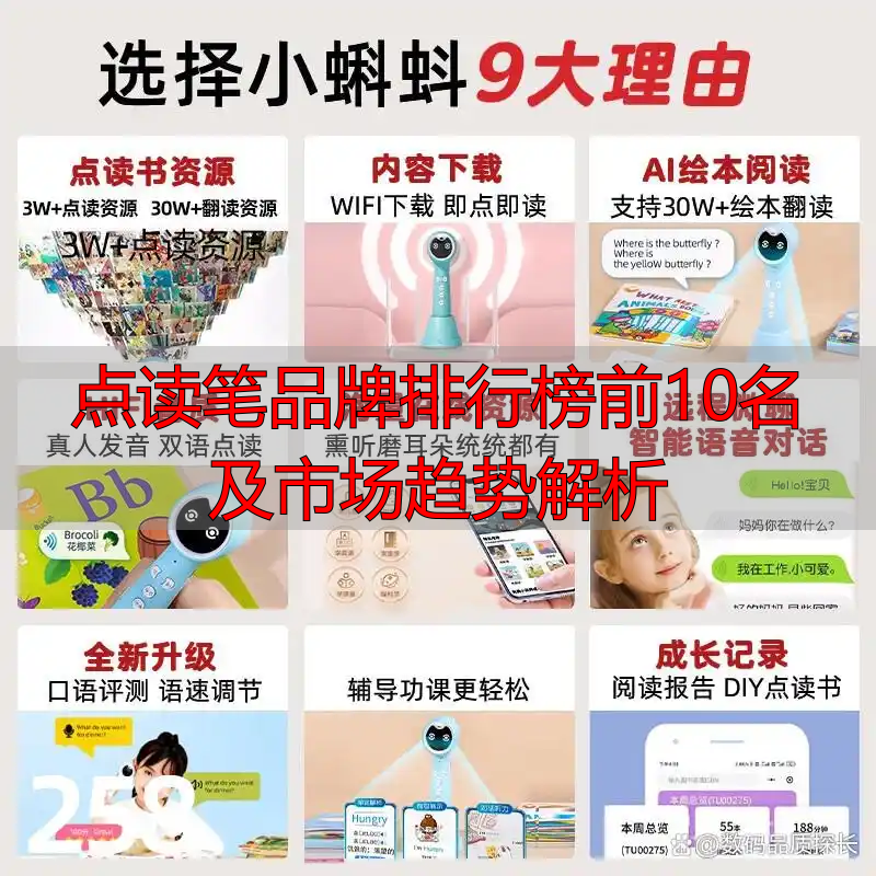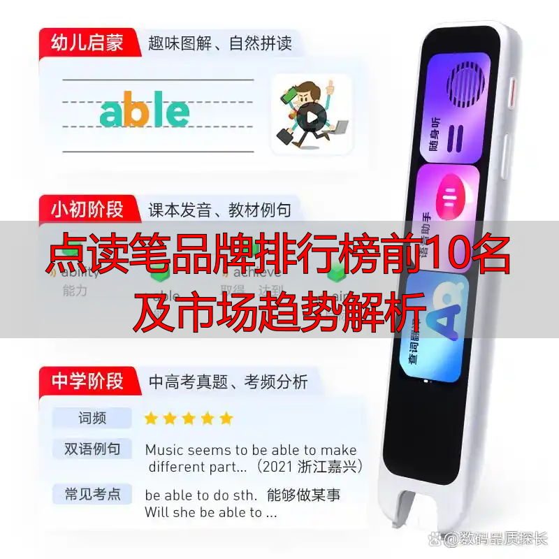 点读笔作为现代教育中的重要辅助工具,其影响正愈发显著。伴随着技术的革新和家长对教育质量的重视,市面上涌现出多款不同品牌的点读笔,形成了点读笔品牌排行榜前10名。每个品牌都有其核心竞争力,有的注重语言学习,有的则强调多学科知识的整合。在挑选时,不同家庭应根据孩子的学习阶段、兴趣及使用习惯来选择合适的产品。本文所列的品牌均经过市场验证,具备良好的口碑和教育效果。坚持以教育为核心价值观,这些品牌不仅关注产品的创新,更注重提供科学和个性化的学习体验。希望通过我们的评测,能帮助家长们找到最适合孩子背后的那款点读笔,让学习变得更加轻松、有趣。