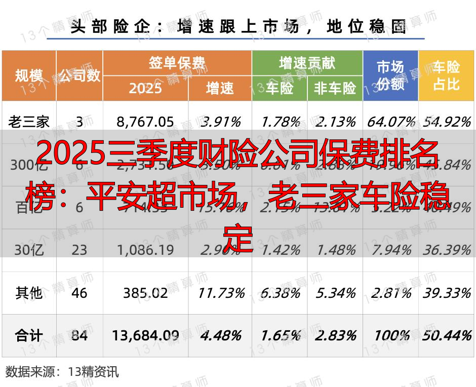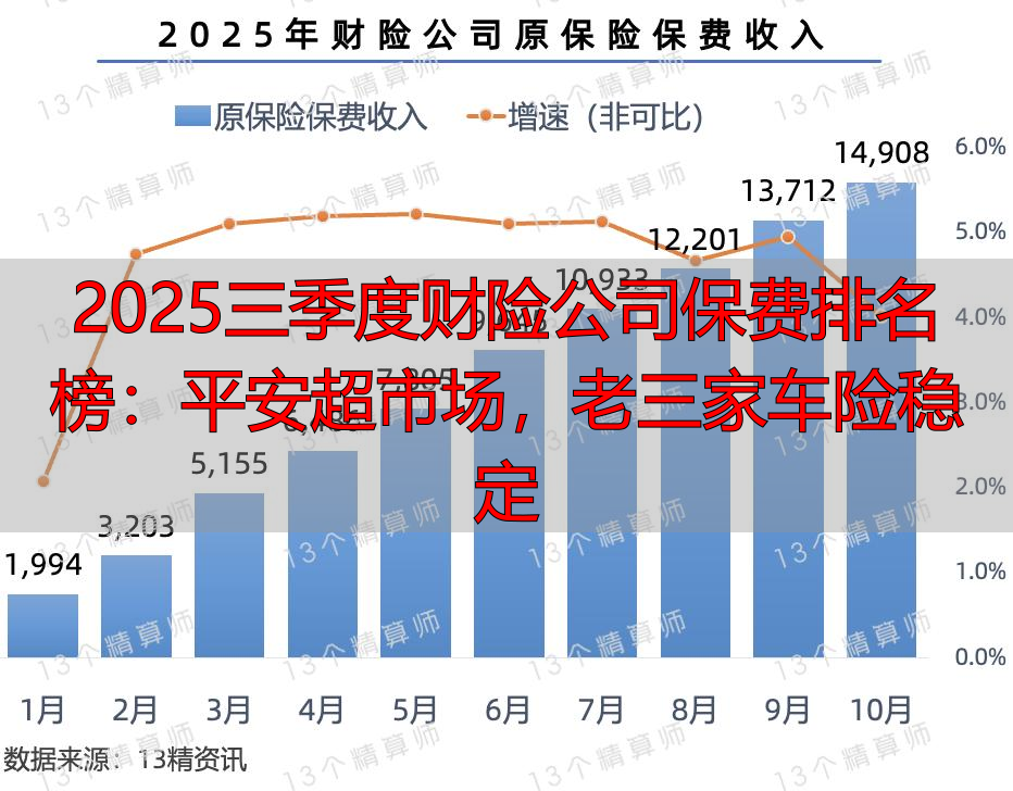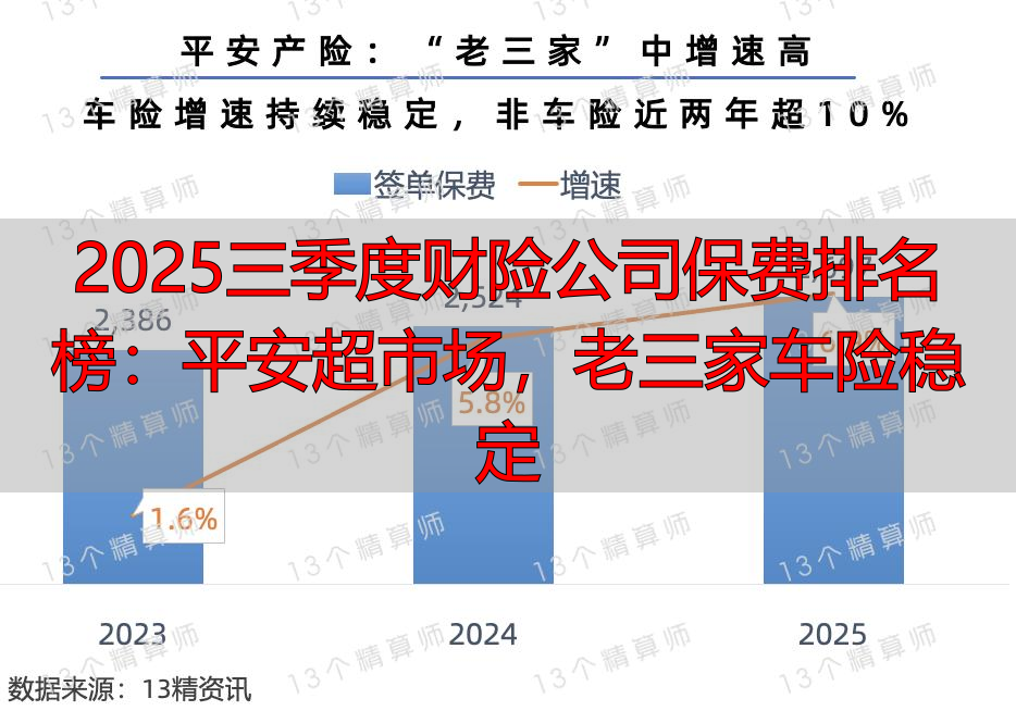 2025年前三季度,财险“老三家”的保费增速为3.9%,紧跟市场,其中,平安产险的增速最高。