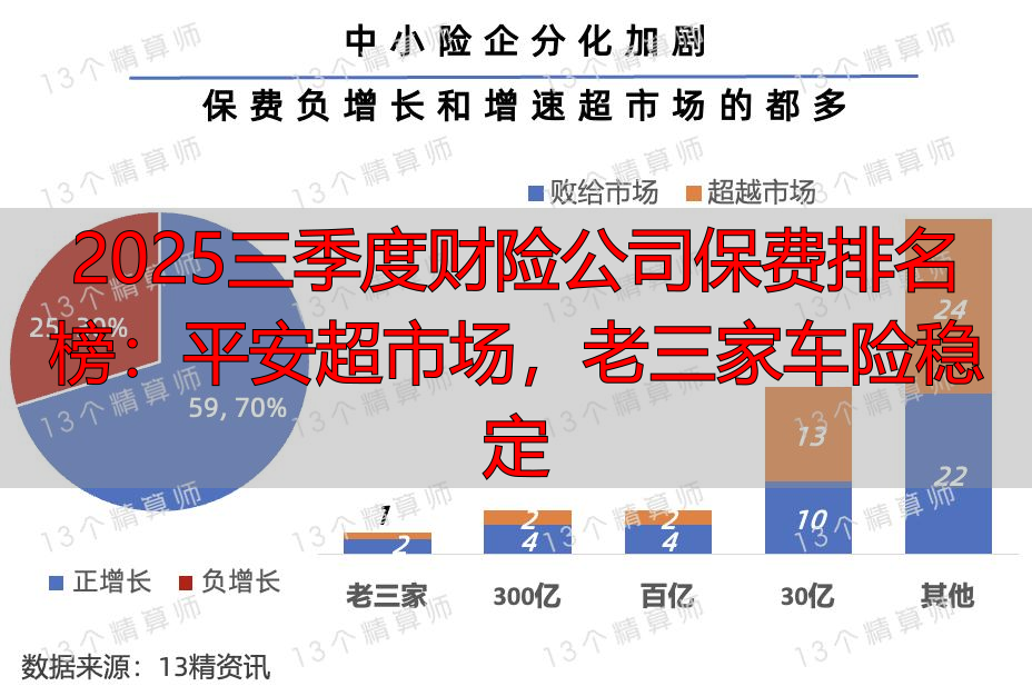 30亿规模险企中,10家公司保费增速低于市场,其中,7家都是负增长。