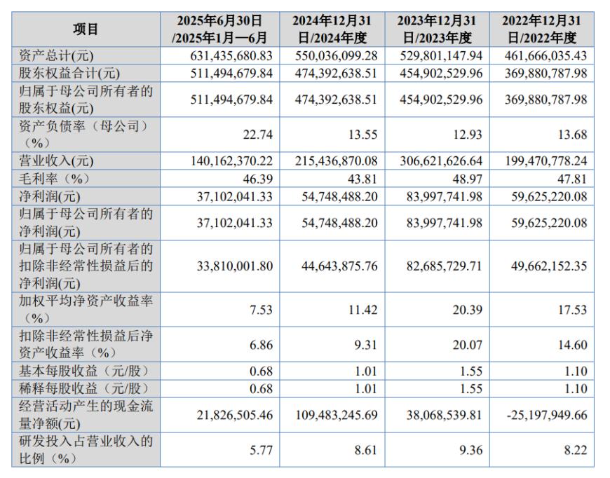 报告期内(2022年至2025年上半年),辛帕智能的营业收入分别为1.99亿元、3.07亿元、2.15亿元、1.4亿元;净利润分别为5962.52万元、8399.77万元、5474.85万元、3710.2万元。