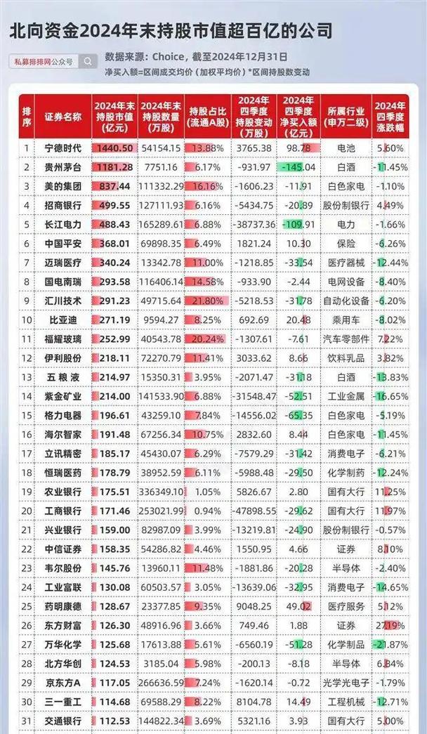 正文 北向资金去年四季度加仓59股 三木 V管理员 /01-18 /0 评论 /9 阅读 0118 文章最后更新时间2026年01月18日,若文章内容或图片失效,请留言反馈! 根据Wind数据统计,截至2025年末,北向资金持有A股数量合计近1080亿股,按年末收盘价计算,北向资金持股市值达2.59万亿元,创出历史次高,仅次于2021年,较上年末增长近20%。从各个季度数据看,北向资金自2025年一季度起持股市值连续4个季度增加。其中,59股去年四季度末较三季度末被北向资金加仓幅度超过320倍。 股票频道更多独家策划、专家专栏,免费查阅>>