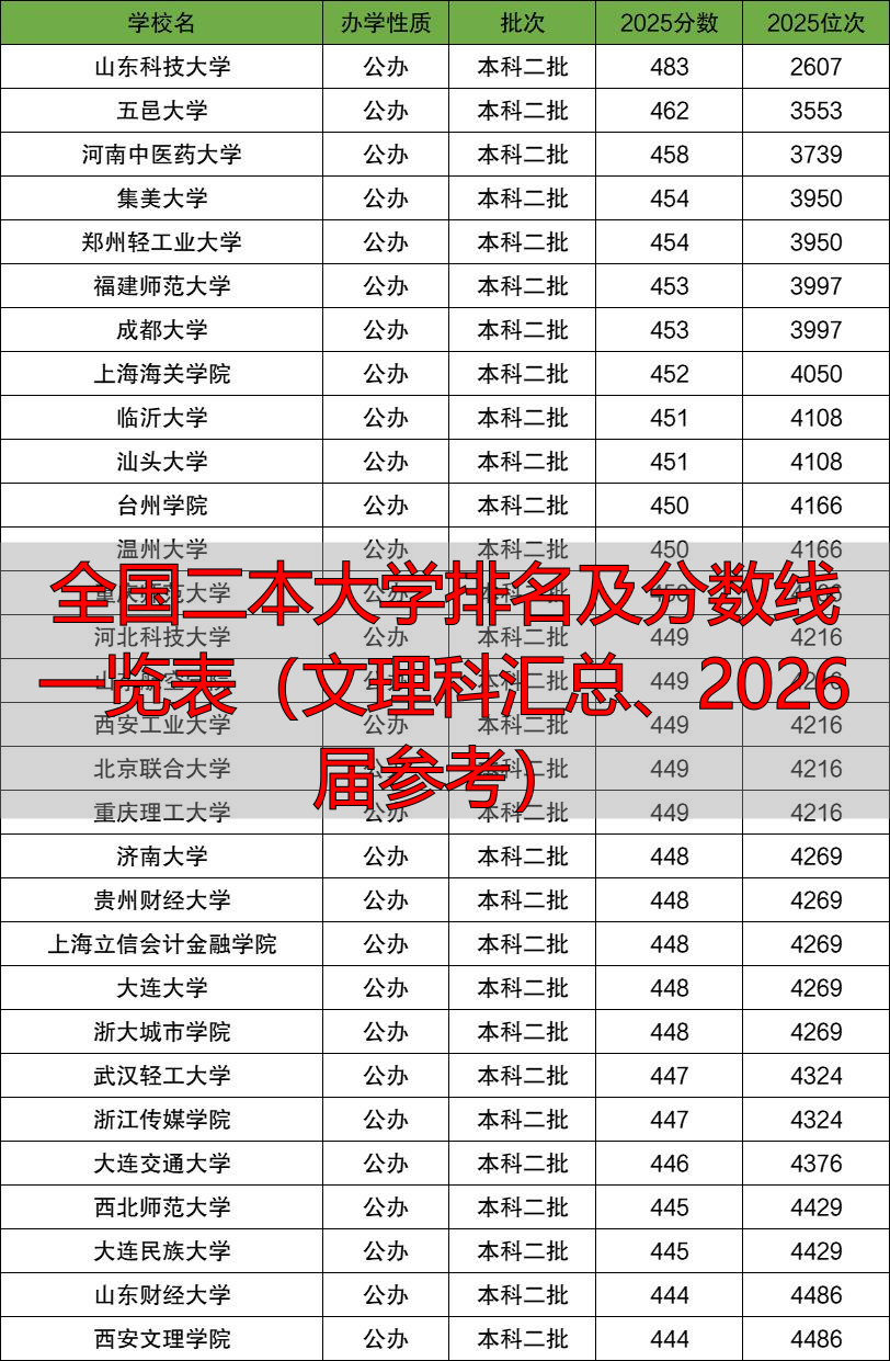 二本大学的排名可以从综合实力、分数线等多种角度进行,本文就分数线的方向来整理出二本大学的排名榜。