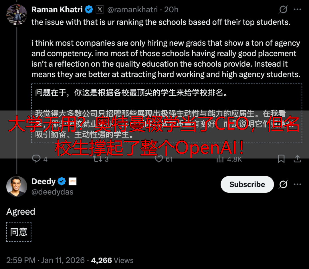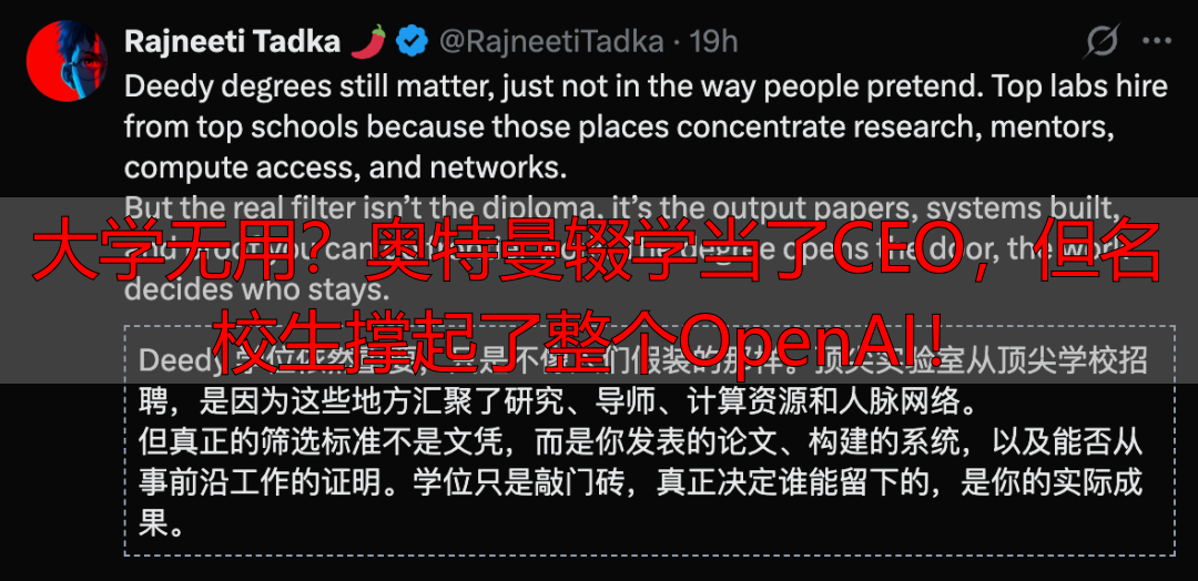 奥特曼甚至说,大学对「大多数而言,并没什么效果」。