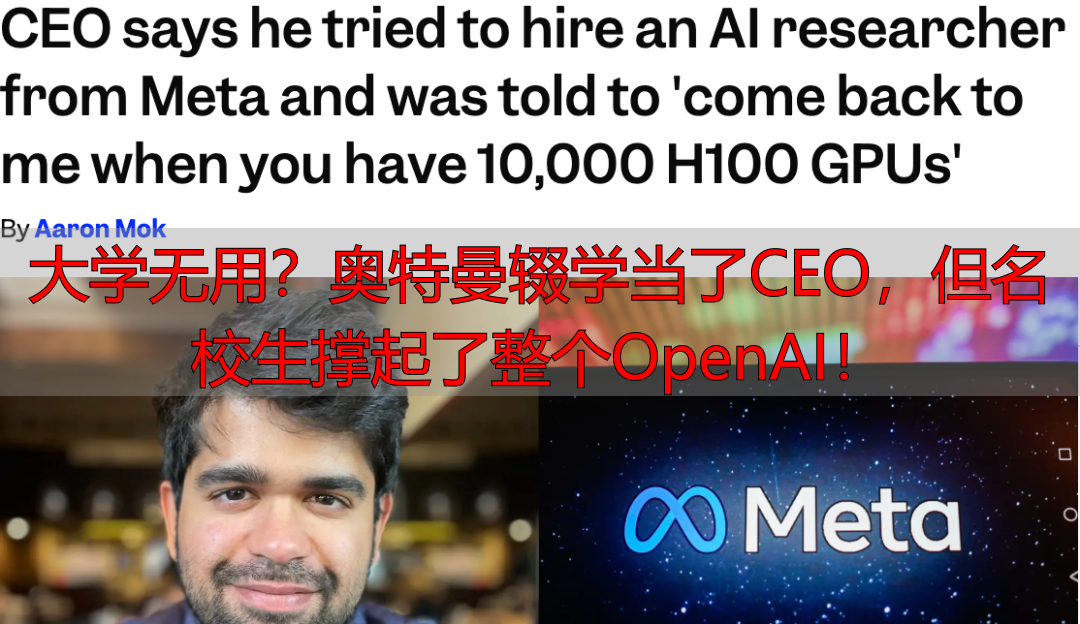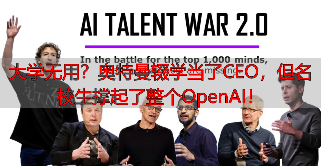 OpenAI的首席执行官奥特曼上了2年大学后,从斯坦福辍学开始创业,没有大学文凭;