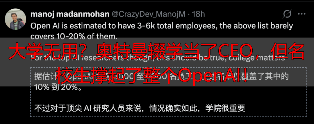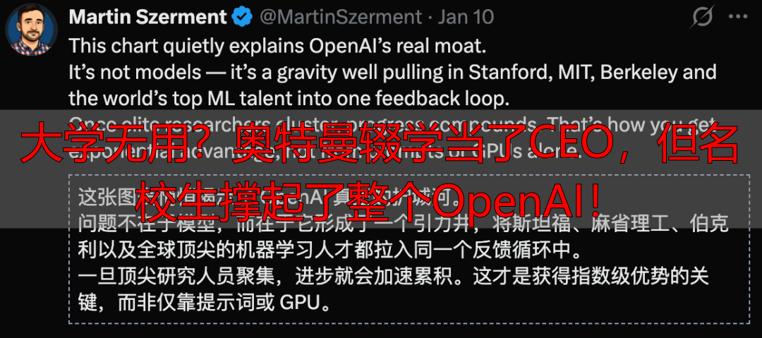这次OpenAI员工的母校排行榜单,再一次证明OpenAI真正的护城河在于对AI人才的吸引力,而不是AI模型。