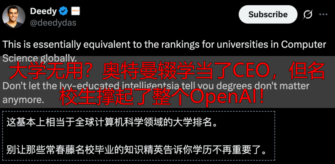 科技投资人Deedy精准地概括了这份名单的特点:「本质上,这就是全球计算机科学的大学排名。」