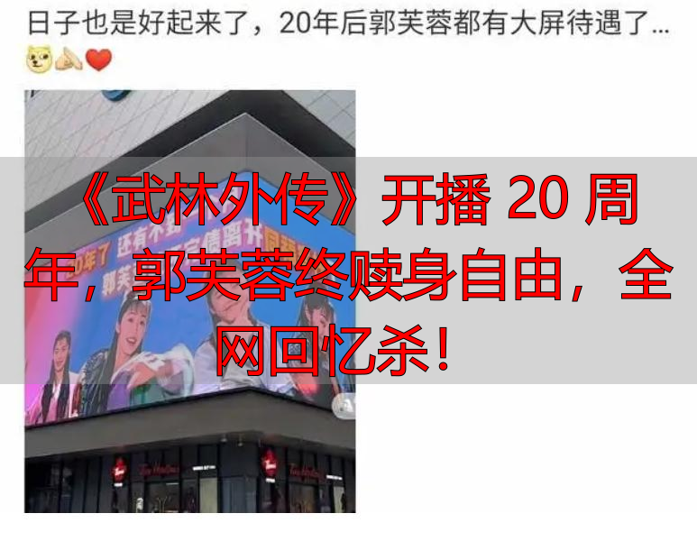 全国商圈大屏轮播致敬:北京、上海、西安、杭州等数十城核心商圈,大屏循环播放郭芙蓉赎身名场面、同福客栈群像,配文 “恭喜郭女侠重获自由”,路人驻足打卡,氛围感直接拉满。