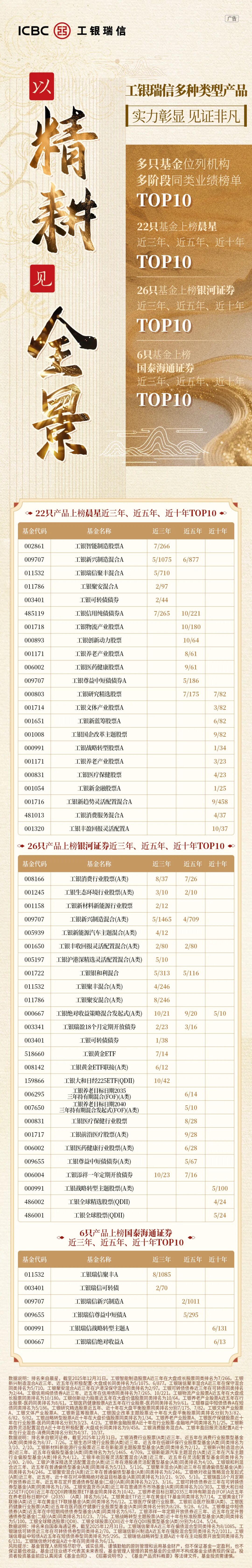 刚刚过去的2025年,A股市场在深化改革开放与科技创新驱动下砥砺前行,整体呈现出先扬后抑的态势,结构性行情更凸显专业投资能力的重要性。面对复杂多变的市场环境,工银瑞信基金凭借其强大的平台化投研体系和多元化资产配置能力,在主动权益、固定收益、指数及海外投资等核心领域展现出卓越的韧性,旗下多只产品获评权威评价机构五星评级,并在中长期维度上排名领先,彰显出穿越市场周期的投资实力。