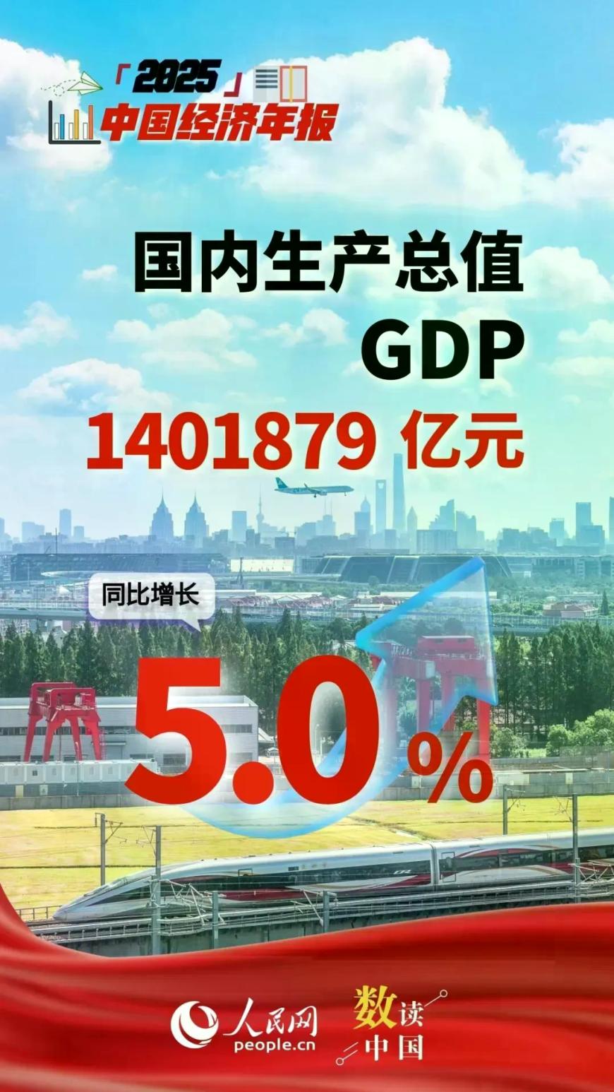 正文 突破140万亿!2025年GDP同比增长5% 三木 V管理员 /01-19 /0 评论 /8 阅读 0119 文章最后更新时间2026年01月19日,若文章内容或图片失效,请留言反馈! 国家统计局1月19日发布数据显示,初步核算,2025年全年国内生产总值1401879亿元,按不变价格计算,比上年增长5.0%。 分产业看,第一产业增加值93347亿元,比上年增长3.9%;第二产业增加值499653亿元,增长4.5%;第三产业增加值808879亿元,增长5.4%。分季度看,一季度国内生产总值同比增长5.4%,二季度增长5.2%,三季度增长4.8%,四季度增长4.5%。从环比看,四季度国内生产总值增长1.2%。 股票频道更多独家策划、专家专栏,免费查阅>>
