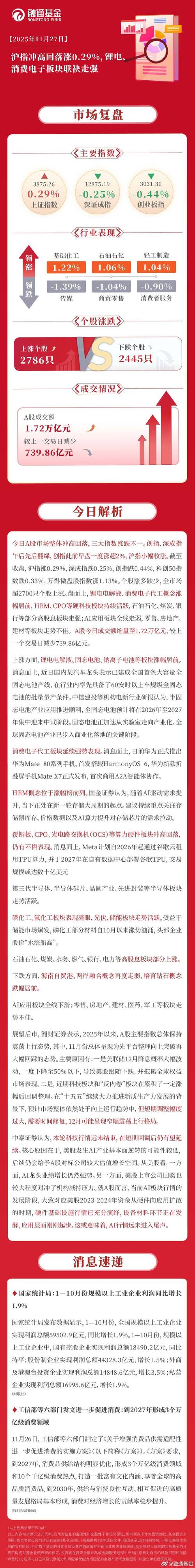 总体看,沪深两市成交额2.71万亿元,较上一个交易日缩量3179亿元。全市场超3500只个股上涨。