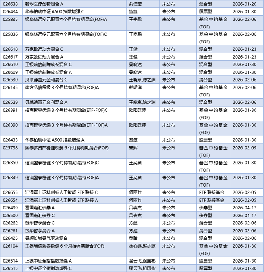 三、01月19日新发基金一览(不包含传统封闭式基金)