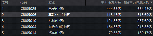 资金面上,基础化工板块获主力资金持续加码。数据显示,截至发稿,基础化工板块单日获主力资金净流入超113亿元,净流入额在30个中信一级行业中位居第4;近5日,基础化工板块获主力资金净流入额更是高达313亿元,净流入额在30个中信一级行业中高居第2。