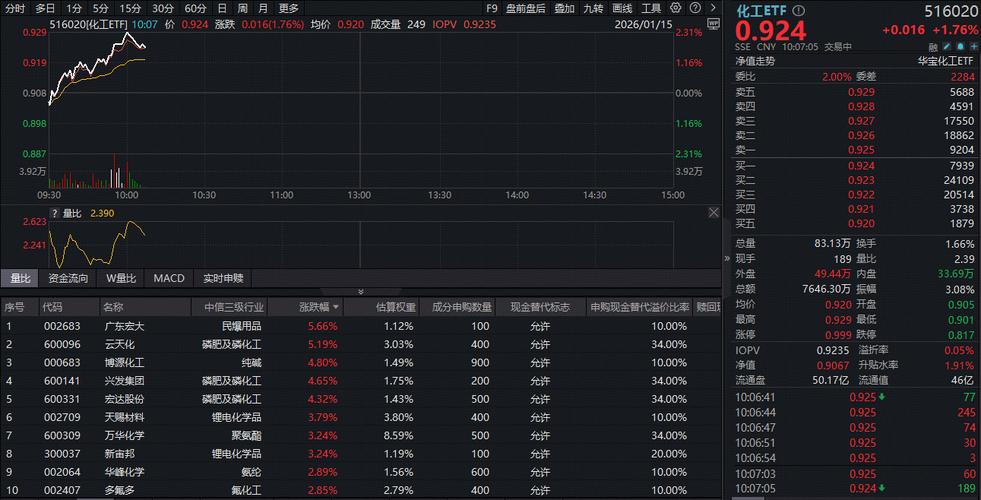 成份股方面,锂电、钾肥、磷化工等板块部分个股涨幅居前。截至发稿,浙江龙盛飙涨超9%,三棵树大涨超6%,亚钾国际、和邦生物、新宙邦等涨超4%。