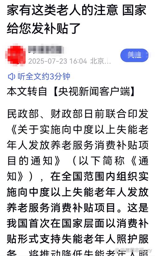 中新网1月22日电 据民政部网站消息,1月22日,民政部、财政部联合发布通知,从2026年1月1日起,在全国范围内组织实施向中度以上失能老年人发放养老服务消费补贴项目。