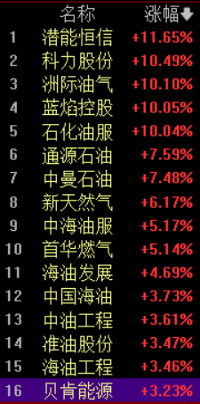 油气概念快速拉升,油气开采与服务板块涨超5.6%。截止发稿,潜能恒信、科力股份涨超10%,洲际油气、蓝颜控股、石化油服涨停,其中洲际油气2连板,通源石油、中曼石油涨超7%,新天然气、中海油服首华燃气涨超5%。