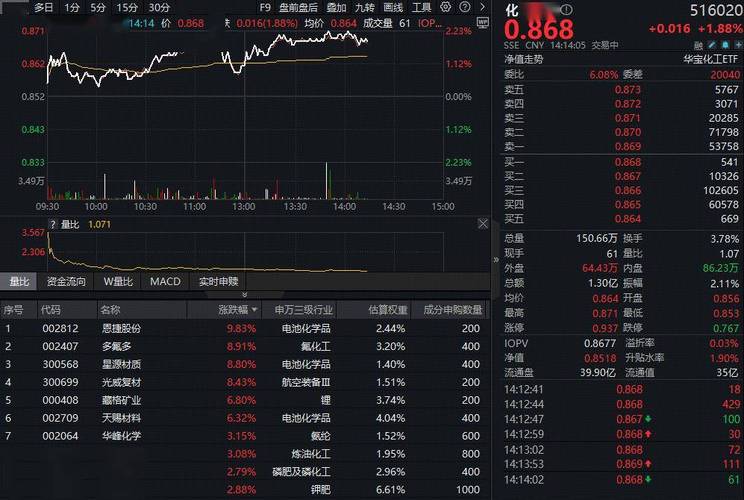 成份股方面,纯碱、钛白粉、氮肥等板块部分个股涨幅居前。截至发稿,和邦生物飙涨超9%,中简科技大涨超6%,龙佰集团、浙江龙盛、鲁西化工等多股涨超4%。