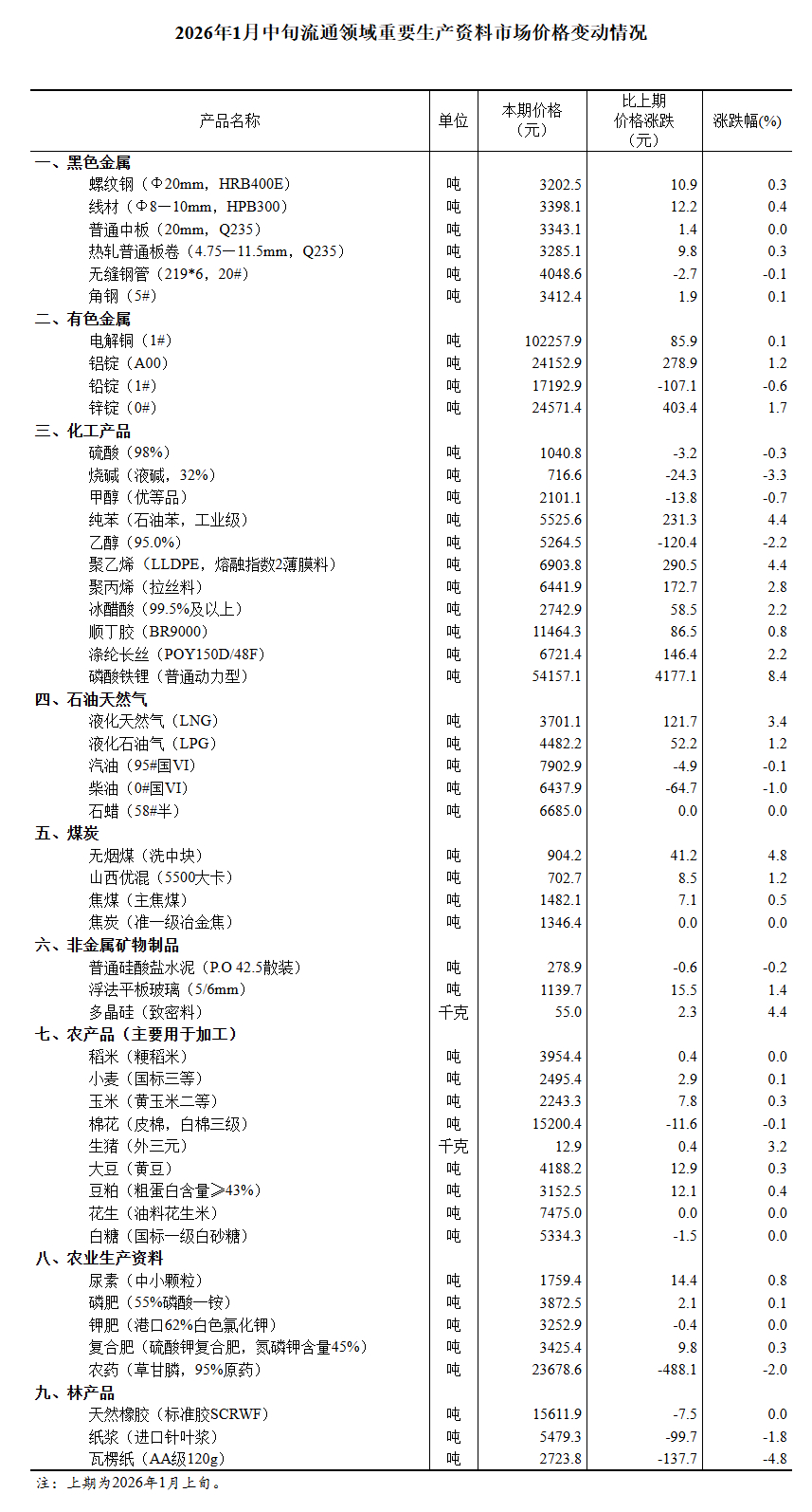 正文 国家统计局:1月中旬生猪(外三元)价格环比上涨3.2% 三木 V管理员 /01-24 /0 评论 /10 阅读 0124 文章最后更新时间2026年01月24日,若文章内容或图片失效,请留言反馈! 中新网1月24日电 据国家统计局网站消息,国家统计局1月24日发布2026年1月中旬流通领域重要生产资料市场价格变动情况。据对全国流通领域9大类50种重要生产资料市场价格的监测显示,2026年1月中旬与1月上旬相比,29种产品价格上涨,13种下降,8种持平。