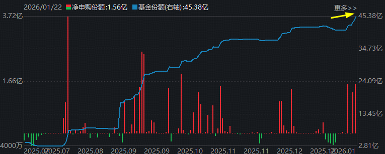 顺周期方面,银包铜、电镀铜方案有望在光伏金属化革命中发挥重要作用,叠加国际金价冲击5000美元大关,刷新历史新高,有色ETF华宝(159876)场内价格猛拉3.37%,放量突破上市高点,全天获资金净申购5520万份。化工亦有亮眼表现,全面覆盖新能源、反内卷等热门主题的化工ETF(516020)场内价格劲涨1.03%,近5日狂揽11.98亿元,截至1月22日,最新规模突破60亿元(62.42亿元)。
