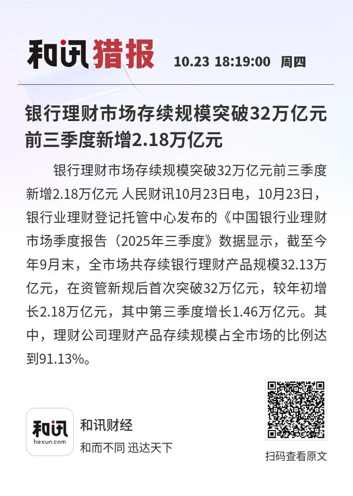 正文 我国银行理财市场规模突破33万亿元 三木 V管理员 /01-25 /0 评论 /9 阅读 0125 文章最后更新时间2026年01月25日,若文章内容或图片失效,请留言反馈! 新华社权威快报|我国银行理财市场规模突破33万亿元 1月23日,银行业理财登记托管中心发布《中国银行业理财市场年度报告(2025年)》。根据报告,截至2025年末,银行理财市场存续规模33.29万亿元,较年初增长11.15%。 2025年全年累计新发理财产品3.34万只,募集资金76.33万亿元,为经济社会发展提供高质量服务。 截至2025年末,持有理财产品的投资者数量达1.43亿个,较年初增长14.37%。2025年,理财产品累计为投资者创造收益7303亿元。