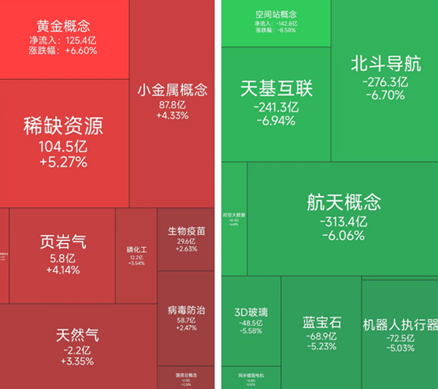 1月26日,A股三大指数集体调整。截至收盘,沪指跌0.09%报4132.61点,深成指跌0.85%报14316.64点,创业板指跌0.91%报3319.15点。从板块行情上来看,今日表现较好的是黄金概念、稀缺资源和小金属概念,而空间站概念、航天概念和机器人执行器等板块下跌。