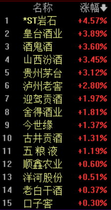 白酒(核心股)板块午后再度拉升,皇台酒业、酒鬼酒、山西汾酒、贵州茅台等涨超3%,其中贵州茅台股价站稳1500元,泸州老窖涨超2%,迎驾贡酒、舍得酒业涨近2%。