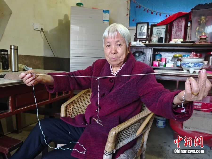 今年75岁的戴美霞是管驿前村村民,她也是少数至今还会制作卡子的村民。“我14岁就会做卡子,这门手艺是祖祖辈辈传下来的。”