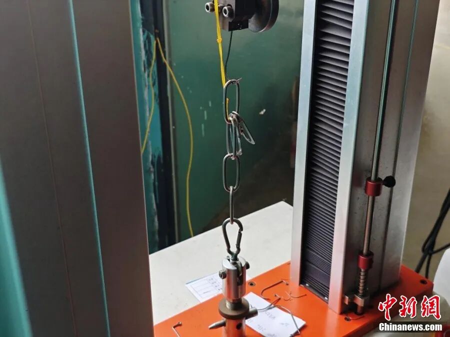 正在测试拉力的鱼钩。 熊锦阳 摄