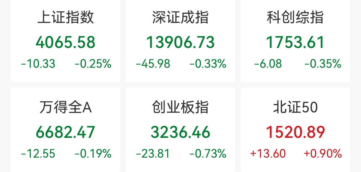 中新经纬2月6日电 6日,A股三大指数低开高走,午后小幅回落。截至收盘,上证指数跌0.25%,报4065.58点;深证成指跌0.33%,报13906.73点;创业板指跌0.73%,报3236.46点。