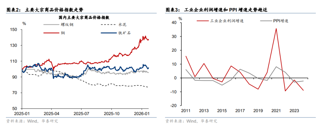 值得注意的是,PPI的走势是影响工业企业盈利的关键宏观变量,企业基本面的改善将是人民币及人民币资产重估的核心驱动力。盈利预期的好转将增强中国资产的吸引力,引导内外资重新配置,从而对人民币汇率形成支撑,并推动股市等资产价格实现价值重估。从历史年度数据看,PPI同比增速与规模以上工业企业利润增速之间存在显著的正相关关系(图表3)。2010年以来,在PPI同比上行阶段(如2016-2017年、2021年),工业企业利润增速普遍同步回升或保持高位;而在PPI同比下行或处于负值区间时(如2012-2015年、2023-2024年),企业利润增长则明显承压,甚至出现持续收缩。具体来看,2021年PPI同比大涨8.1%,带动工业企业利润大幅增长35.7%;而2023-2024年PPI持续处于负增长区间,企业利润也连续两年出现下滑。