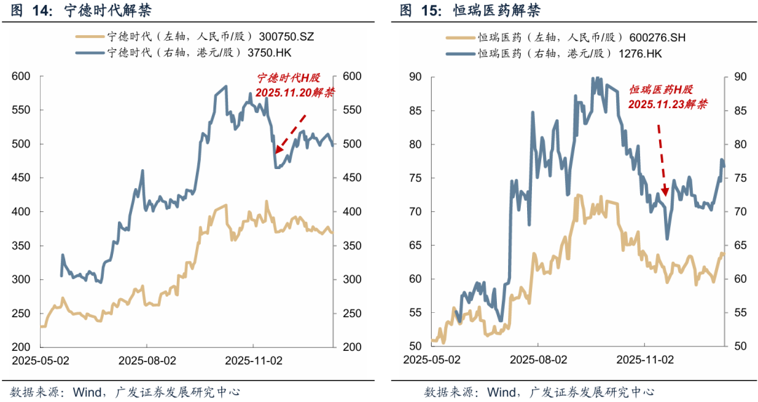 例如,宁德时代和恒瑞医药(核心股)在2025年11月中下旬解禁前一周,两者在解禁日前一周均因市场担忧流动性冲击而遭遇“抢跑式”大幅回调,风险被提前计入定价;而一旦解禁完成,利空出尽反而促使股价快速见底企稳甚至回升。