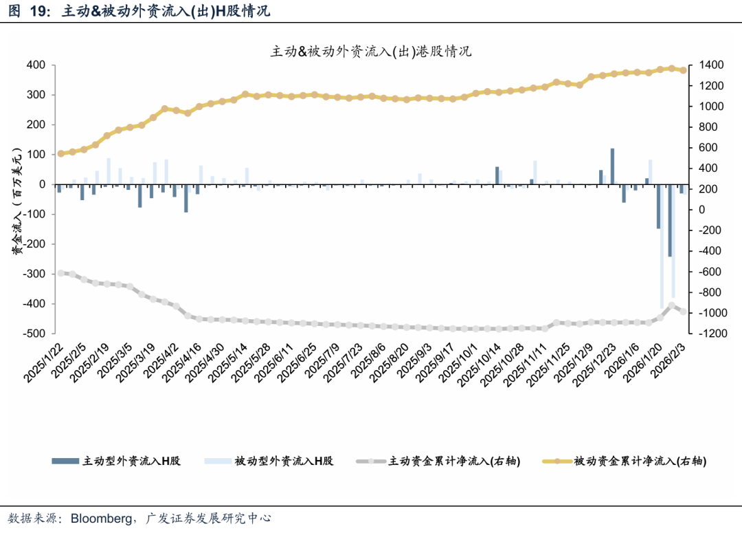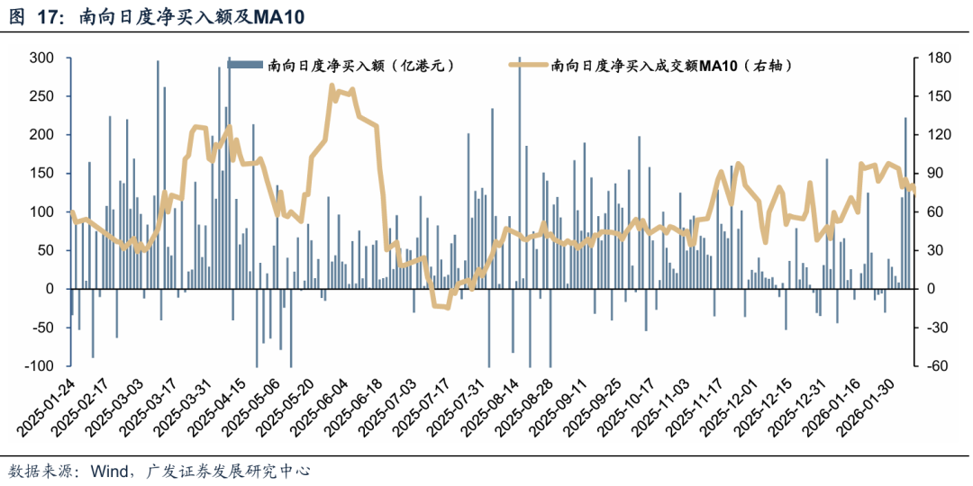 (2)内外资配置需求仍在:南向资金定价权已稳步提升至20%-30%,近期港股主题基金密集上报显示中长期配置意愿依然强劲;外资在年初积极布局中国核心资产,若市场情绪回暖,外资回流可能性较高。