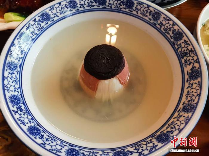火腿、鸡脯、冬笋,三种极鲜的食材,需先批成薄如蝉翼的片,再切成直径不到0.5毫米的细丝,码入底部带小洞的特制扣盅。蒸制后,借巧力与气压将其完整“扣”出,汤清丝立,形如宝塔。这道因《舌尖上的中国》声名远播的功夫菜,仅切配便需近一小时,甚至吸引了远自美国、澳大利亚的食客专程寻味。