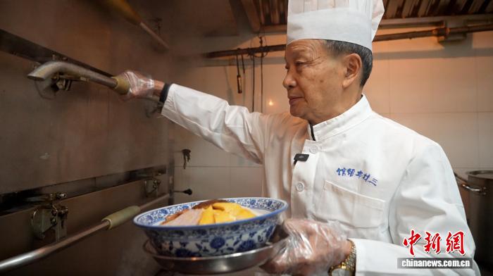 2月2日,三林本帮馆掌勺人李明福正在做全家福。娄瀚锟 摄